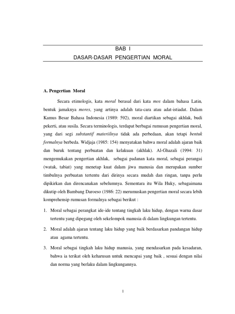 Dasar Dasar Pengertian Moral from imgv2-1-f.scribdassets.com Manusia yang tidak memiliki moral disebut amoral artinya dia tidak bermoral dan tidak memiliki nilai positif di mata manusia lainnya. Dengana secara ringkas, moral tersebut dapat dipahami ialah sebagai acuan perbuatan atau juga perilaku baik dan juga buruk seseorang. Moral ialah produk yang dihasilkan oleh budaya serta agama yang mengatur cara berinteraksi (perilaku, perbuatan dan ucapan) antar sesama manusia. Tahap perkembangan moral kohlbergdari wikipedia bahasa indonesia, ensiklopedia bebas belum diperiksalangsung ke: Moral adalah ajaran tentang laku hidup yang baik berdasarkan pandangan hidup atau agama tertentu. Moral dan etika memiliki kesamaan dalam hal baik dan buruk. Menurut wantah moral merupakan sesuatu yang harus dilakukan atau tidak ada hubungannya dengan kemampuan untuk menentukan siapa yang benar dan perilaku yang baik dan buruk. Definisi/arti kata 'moral' di kamus besar bahasa indonesia (kbbi) adalah n 1 (ajaran tentang) baik buruk yang diterima umum mengenai perbuatan, sikap, kewajiban